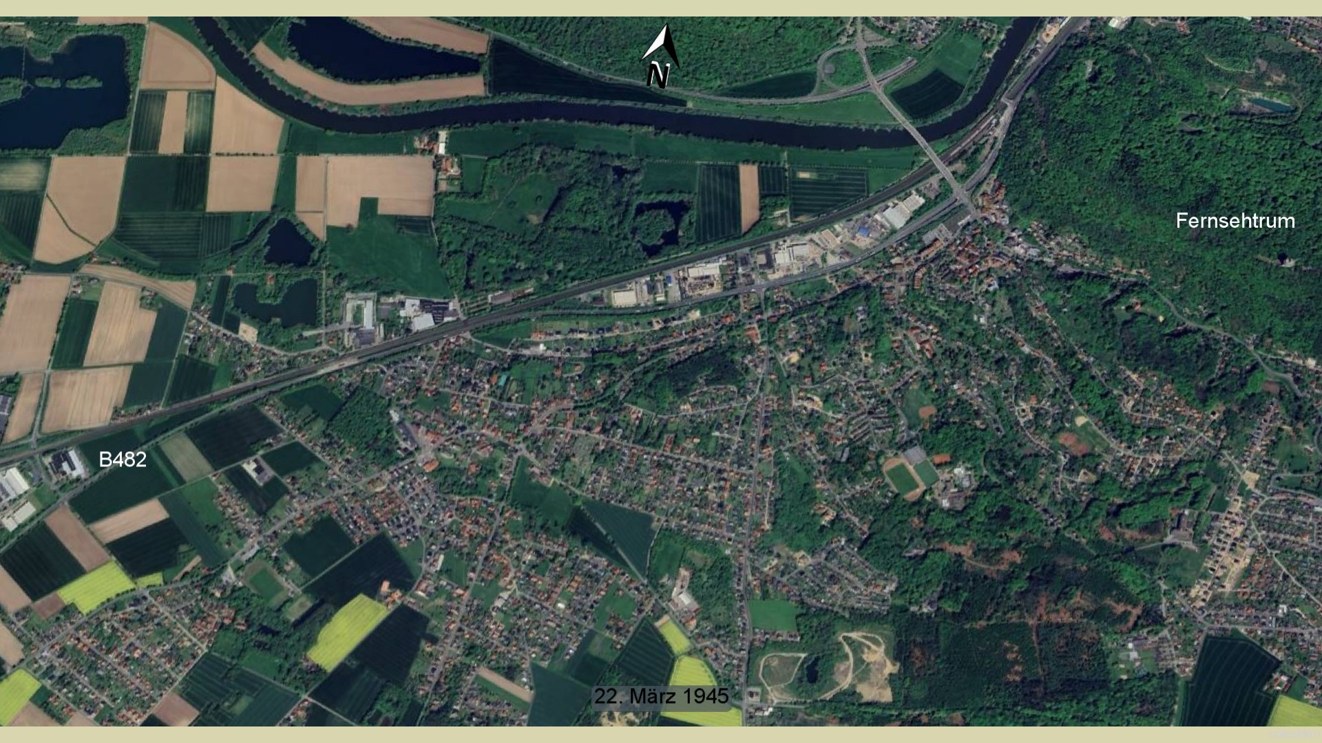 Unten dargestellt die zur Verfügung stehenden Überblendungen der Luftaufnahmen von Heute und vor 80 Jahren. In einem Kurzvideo ist die Lage der KZ-Baracken in Neesen/Lerbeck beschreibend, dargestellt.